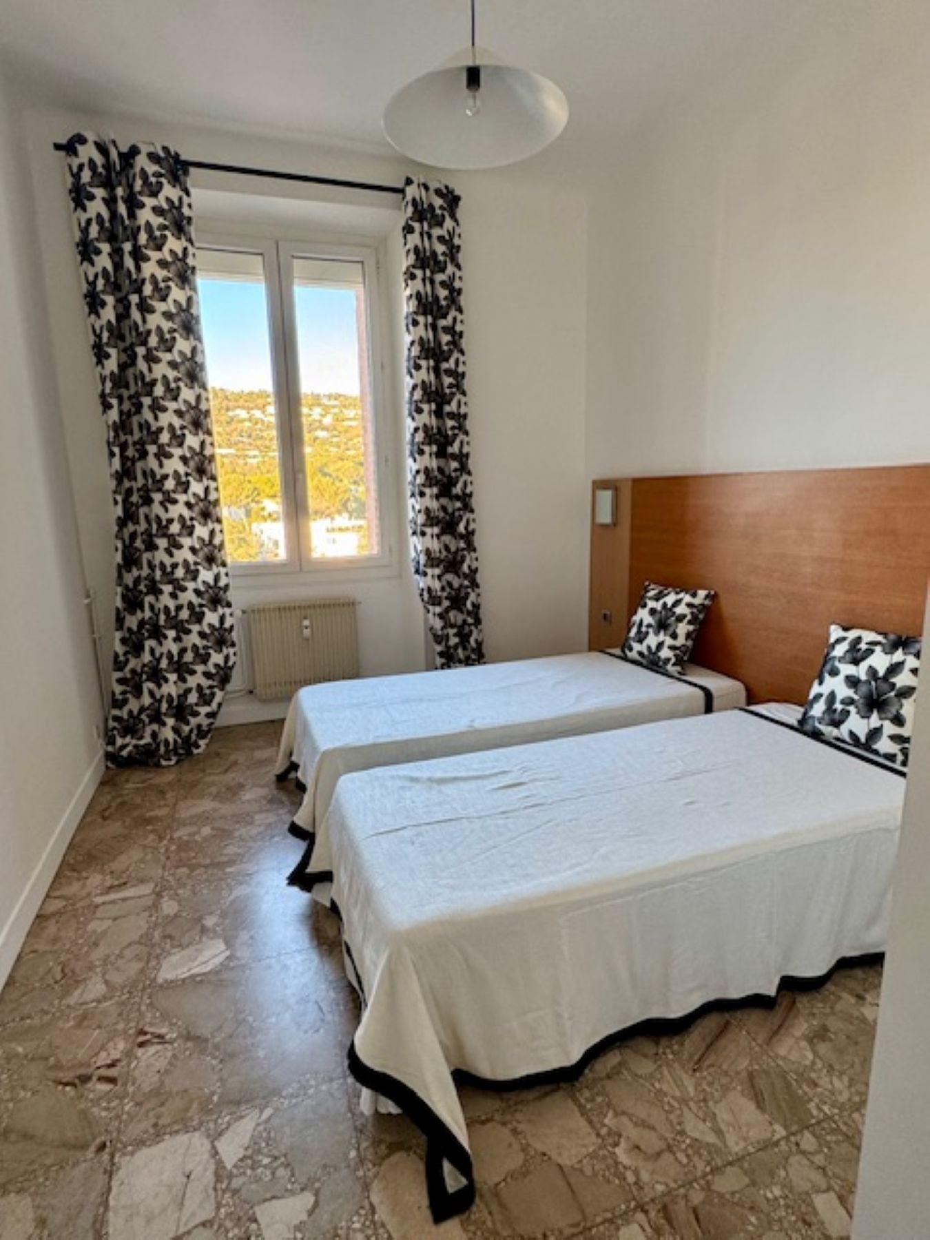 One bedroom with 2 single beds, Large living room with one sofa bed .